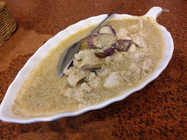 綠咖哩 - 香噴噴的味道,一上菜就被大家搶著吃,吃起來不會很辣,不吃辣的朋友可以試試看,雞肉吃起來不柴,再加上九層塔與茄子的提味,讓整道料理非常的香氣十足,非常下飯!