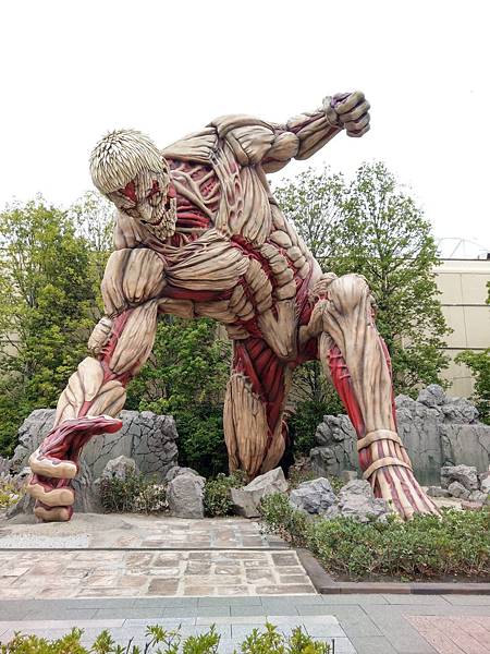 看完超級熱鬧的小小兵大遊行之後,我來到了進擊的巨人區,等比例製作的鎧甲巨人,真是超壯觀的!!!